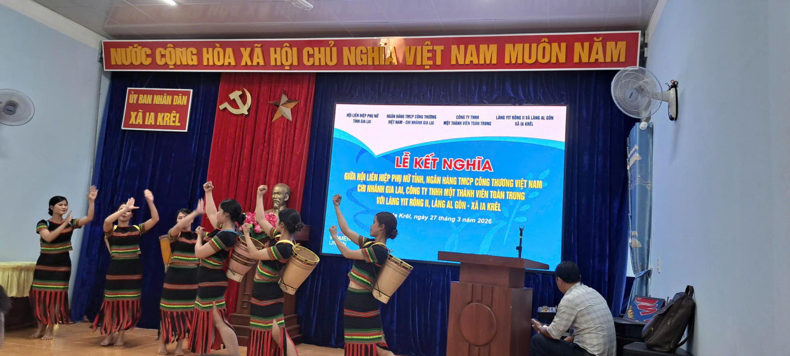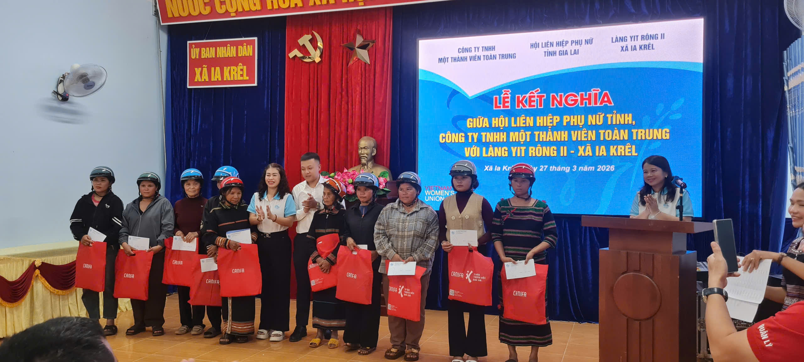 Sáng ngày 27/3, tại xã Ia Krêl, Hội Liên hiệp Phụ nữ tỉnh Gia Lai đã phối hợp cùng Ngân hàng TMCP Công Thương Việt Nam - Chi nhánh Gia Lai và Công ty TNHH Một thành viên Toàn Trung tổ chức Lễ kết nghĩa với làng Yit Rông II và làng Al Gôn – hai làng đặc biệt khó khăn trên địa bàn xã.