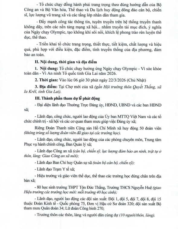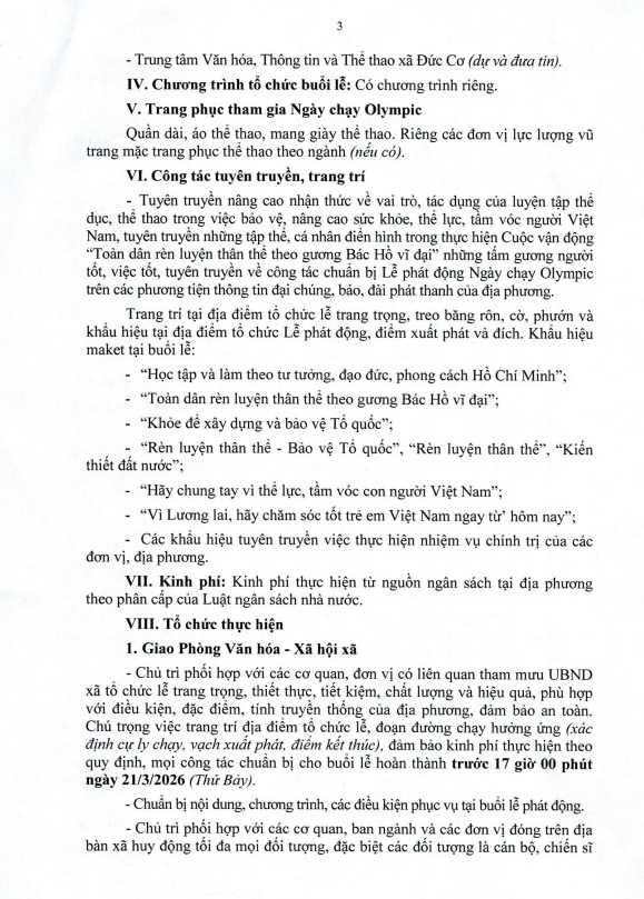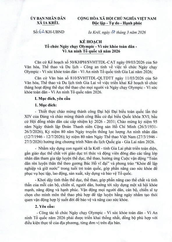 Thứ năm, 19/03/2026 | 10:09 A- A A+ | 📢Thông báo Kế hoạch Tổ chức Ngày chạy Olympic - Vì sức khỏa toàn dân - Vì An ninh Tổ quốc xã năm 2026 Chia sẻ Đọc bài Lưu