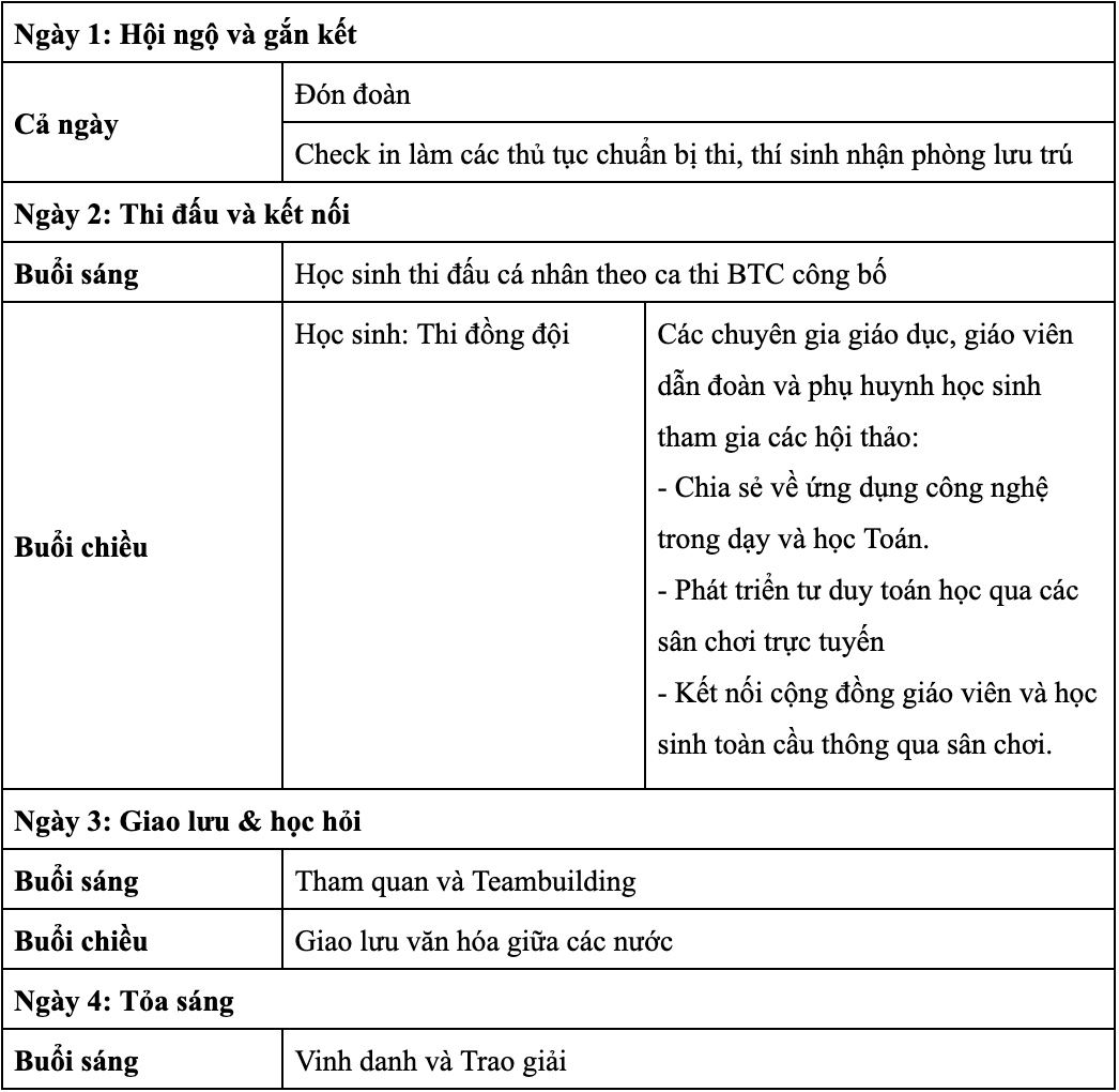 - Kết nối những học sinh đam mê Toán trên khắp thế giới và kiến tạo một cộng đồng học tập toàn cầu – nơi các em được giao lưu, học hỏi, khám phá tiềm năng bản thân và phát triển năng lực ứng dụng toán học vào thực tiễn cuộc sống.