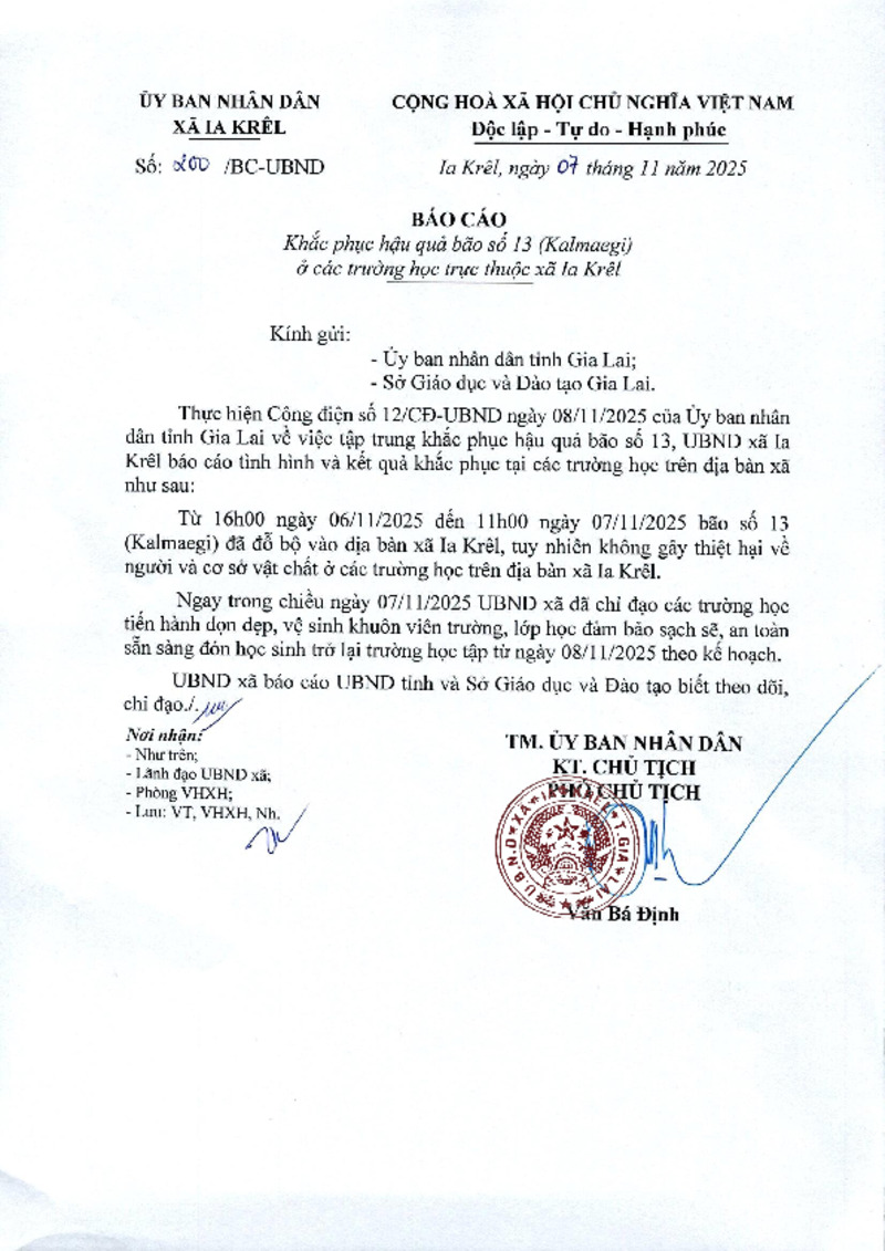 | Tiêu đề văn bản | Khắc phục hậu quả bão số 13 (Kalmaegi) ở các trường học trực thuộc xã Ia Krêl | ||